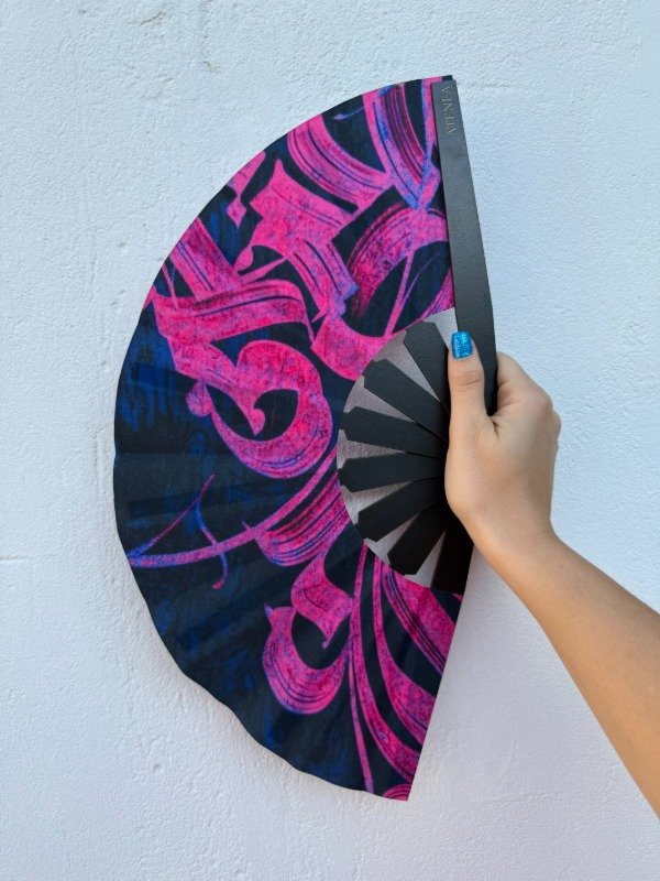 Abanico standard confeccionado a mano, con varillas de madera y lona sublimada con estampas 100% personalizadas.